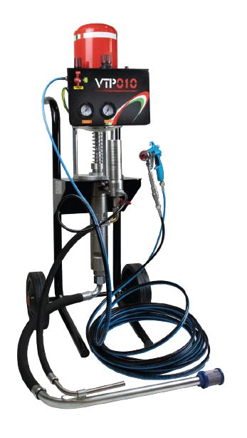 La pompa VTP 010 viene fornita montata su carrello con ruote completa di filtro-riduttore, lubrificatore e filtro di linea.Possibilità di kit allestimento airmix